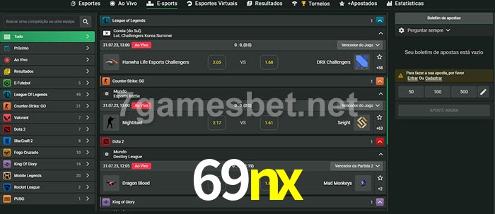 O 69nx oferece uma grande seleção de opções de apostas em e-sports com probabilidades competitivas